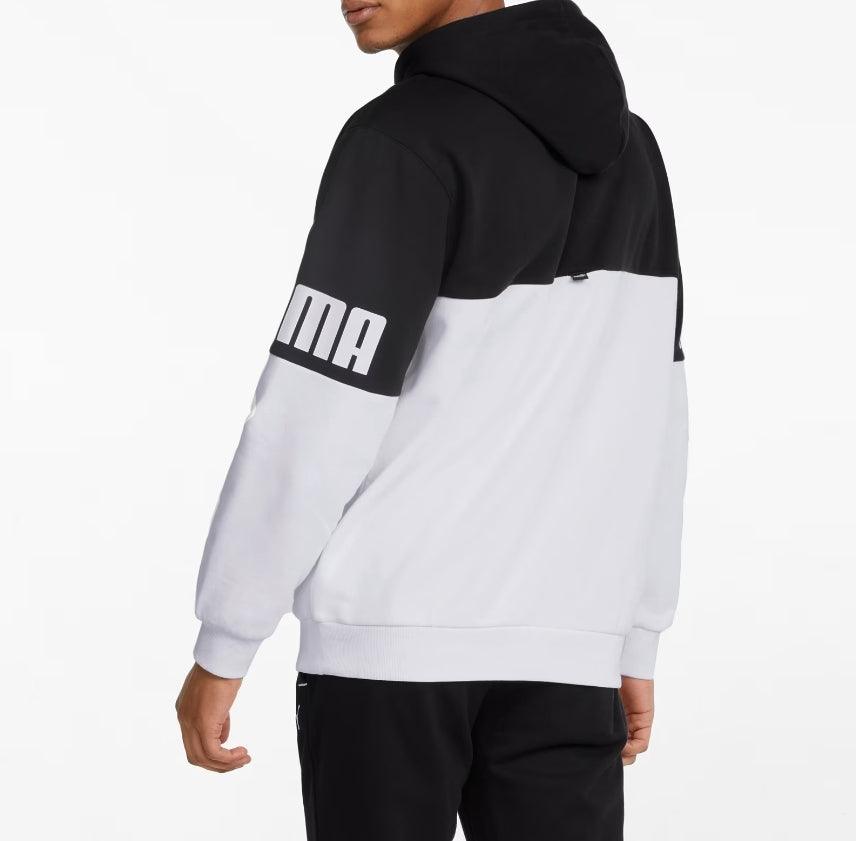 Black White Puma Men Power ColorBlock Hoodie Sweatshirt