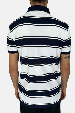 LACOSTE WHITE BLUE STRIPE POLO T-SHIRT