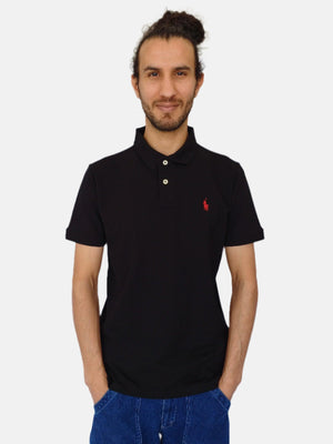 تي شيرت بولو رالف لورين رجالي سادة أسود بقصّة Slim Fit مقاس صغير