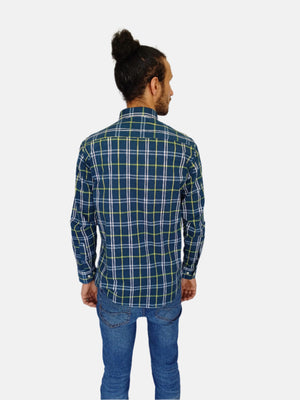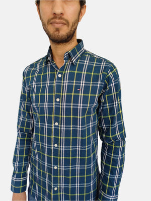 قميص تومي هيلفيغر للرجال بنقشة مربعات باللون الأخضر
