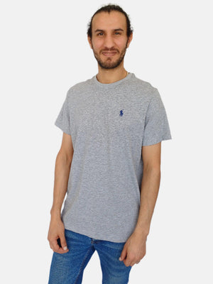تي شيرت رالف لورين رمادي اللون للرجال برقبة دائرية، مقاس صغير