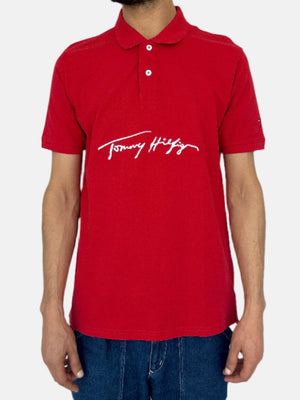 تي شيرت بولو تومي هيلفيغر للرجال باللون الأحمر